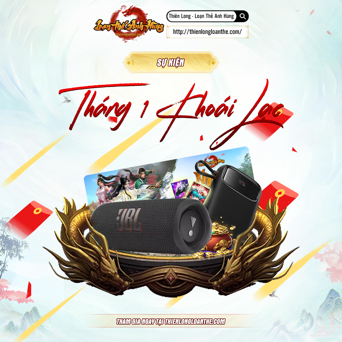 ✨Sau bản cập nhật định kỳ chiều nay, sự kiện Tháng 1 Khoái Lạc sẽ chính thức bắt đầu. Cơ hội để bằng hữu có thể sở hữu cho mình Loa Bluetooth JBL Flip 6, Pin sạc dự phòng Baseus 20.000mAh hay Pad Chuột Loạn Thế Anh Hùng hoàn toàn miễn phí.